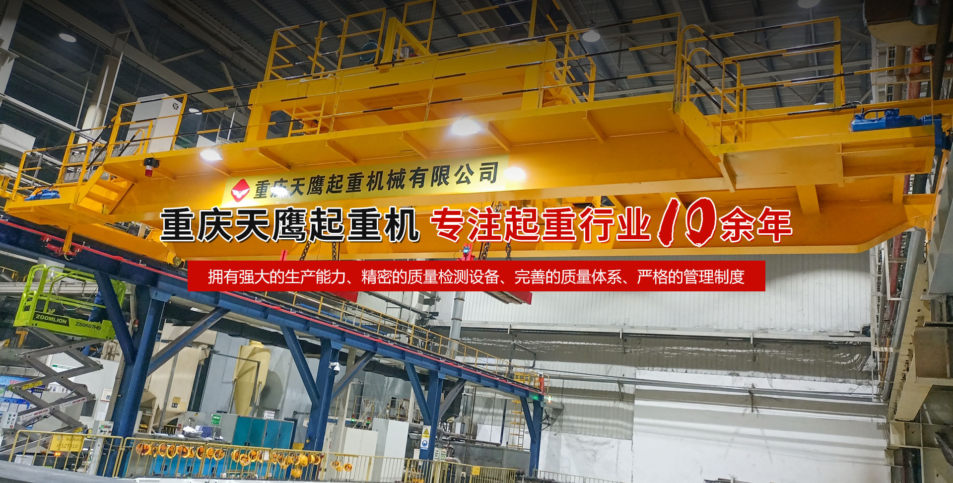 重慶天鷹起重機械有限公司成立于2014年,主營起重機的銷售、安裝和維護等相關服務。中國重型機械工業協會員單位、為中國工程機械工業協會工程機械維修分會會員單位及西南地區起重機械定點安裝維修單位。具有國家質量監督檢疫總局頒發的特種設備安裝維修改造質格證書。并率先通過了IS09001-2000質量體系認證?! 」咀再Y金3000萬元;廠房面積2萬平方米;各種生產檢測設備50臺套,公司技術力量雄厚,聘請了國內知名起重機專家、工程技術人員擔當項目經理、技術總工程師及顧問。現擁有員工100多人,其中工程技術人員12人?! ≈鲗Мa品為各類橋、門式起重機及輕小型起重設備,具備生產起重量200t及以下通用橋、門式起重機的能力,尤其在200t以下起重機產品上具備較強的市場競爭力,為許多行業設計制造了技術含量高、技術性強的起重設備,許多產品在原設計標準上進行了較大的改進、優化和創新;其中NH型系列電動葫蘆、HD型電動單梁處于國內高水平..... 好的產品品質需要由較高的裝備水平來保證,公司購買了“大型數控落地鏜”、“數控切割機床”、“自調式焊接滾輪機”、“數顯液壓板料折彎機”、“超大型數控臥式車床”、“數控液壓水平下調式三輥卷板機”、“單柱移動式立式車床”“擁有用于單梁生產的全國一條拋丸噴漆烘干線、葫蘆噴漆烘干線和全國較大的100T葫蘆試驗臺和檢測中心”等各種先進的加工設備,新建廠房面積近2萬平方米?! ≠|量是企業的生命,天鷹公司依據“ISO 9001國際質量管理體系”標準,制定并完善了公司的質量管理體制。堅持質量體系的內審和外審,將質量管理工作落實到企業生產經營的全過程?! ∧奈⑿?,是天鷹永恒的追求;天鷹的服務,是您首要的選擇!因為我們堅信:“誠信是本、質量鑄就品牌”。為您服務是我們的榮耀,勤奮而進取的天鷹人,時刻期盼著您的到來。